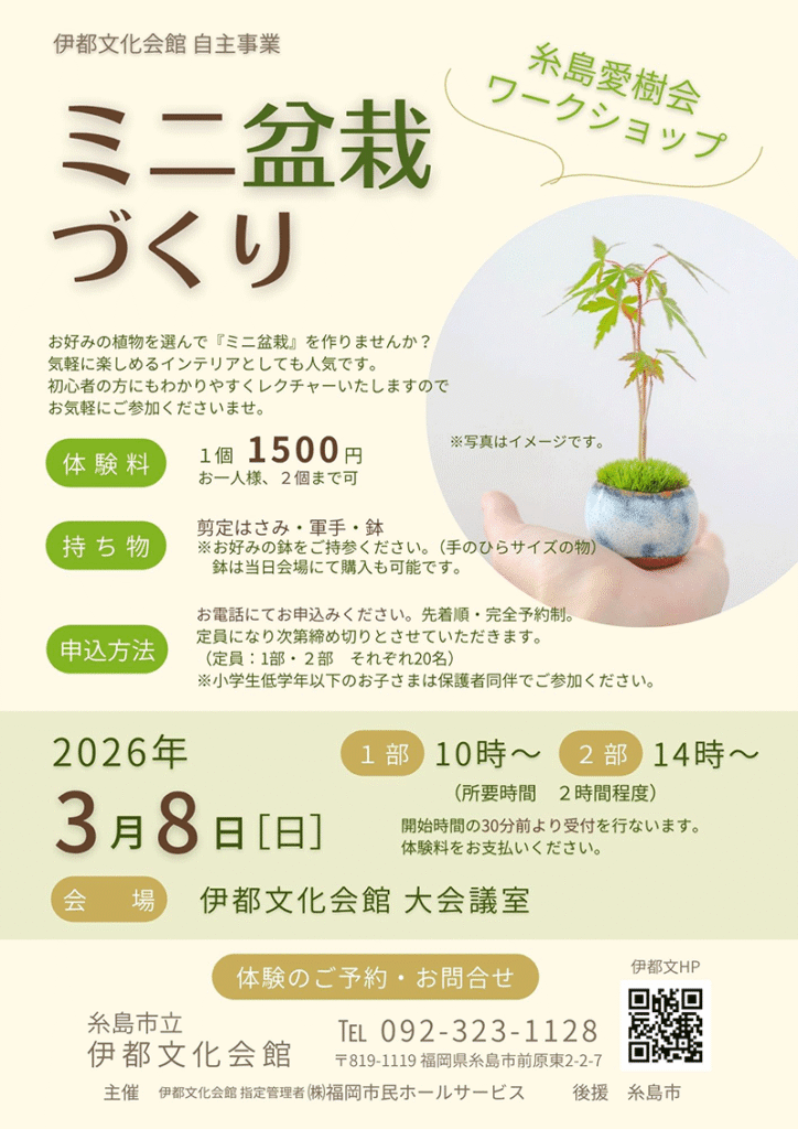 ミニ盆栽づくり (糸島愛樹会ワークショップ・伊都文化会館 自主事業)